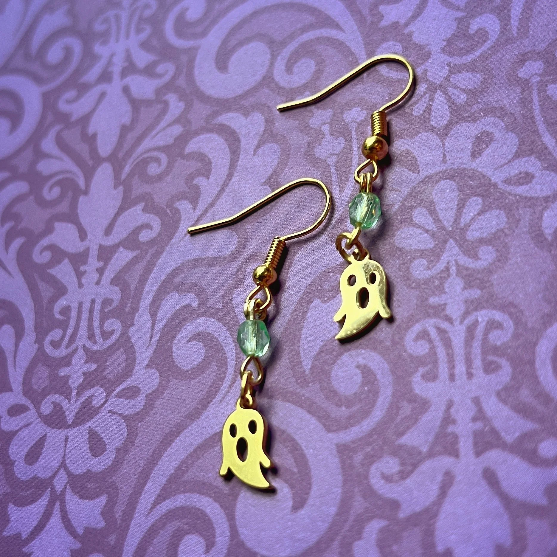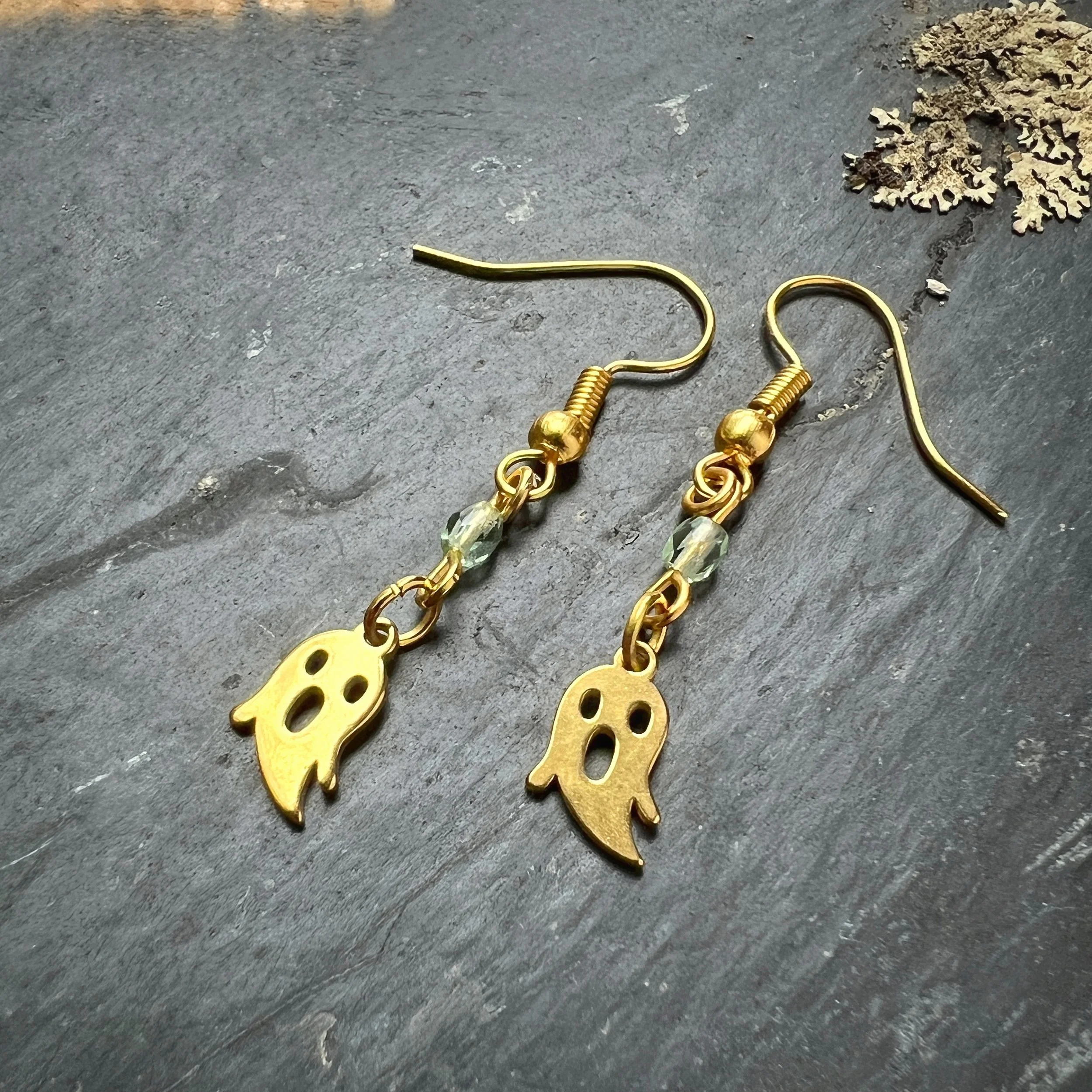 Pale green Czech Uranium Glass Earplug Ear Cuffs with leaf Charms - Sensory Jewelry for Sound Sensitivity