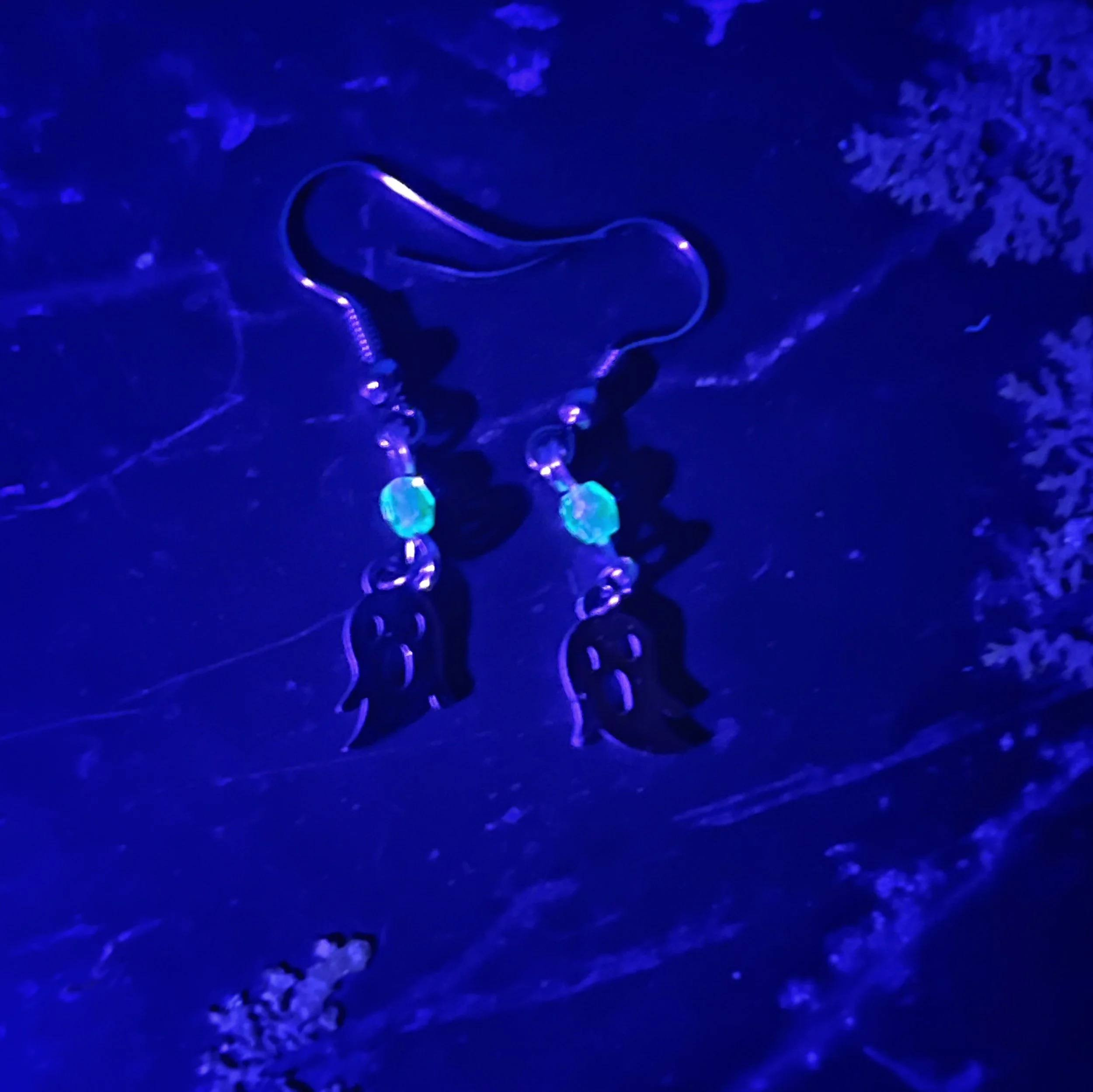 Blue Uranium Glass Earplug Ear Cuffs with Feather Charms - Sensory Jewelry for Sound Sensitivity