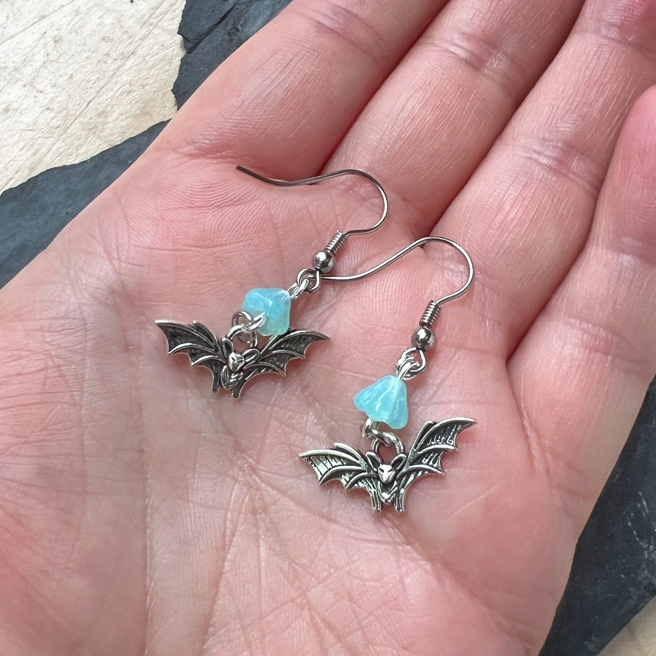 Gothic Bat-wing and Cute Skull Earplug Necklace
