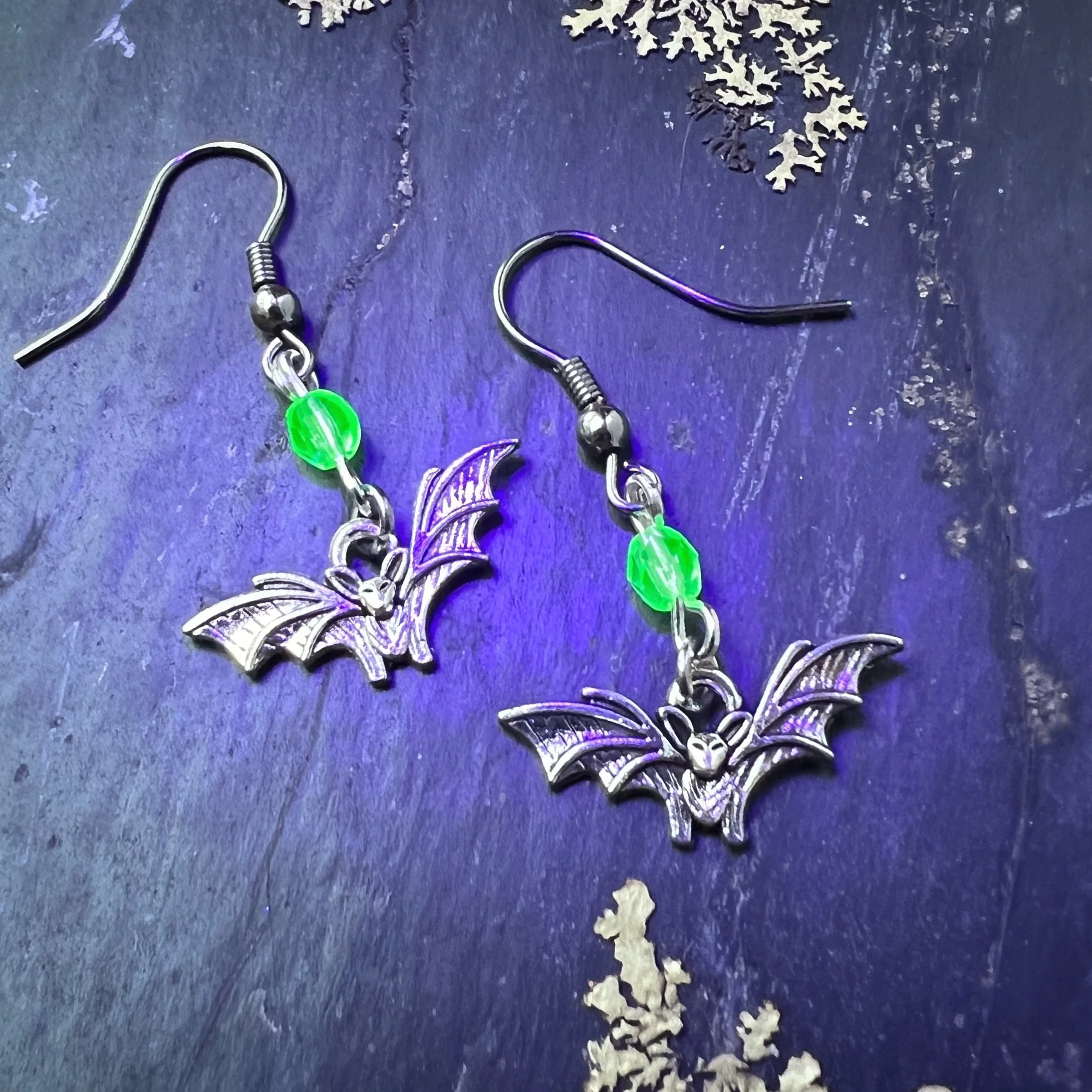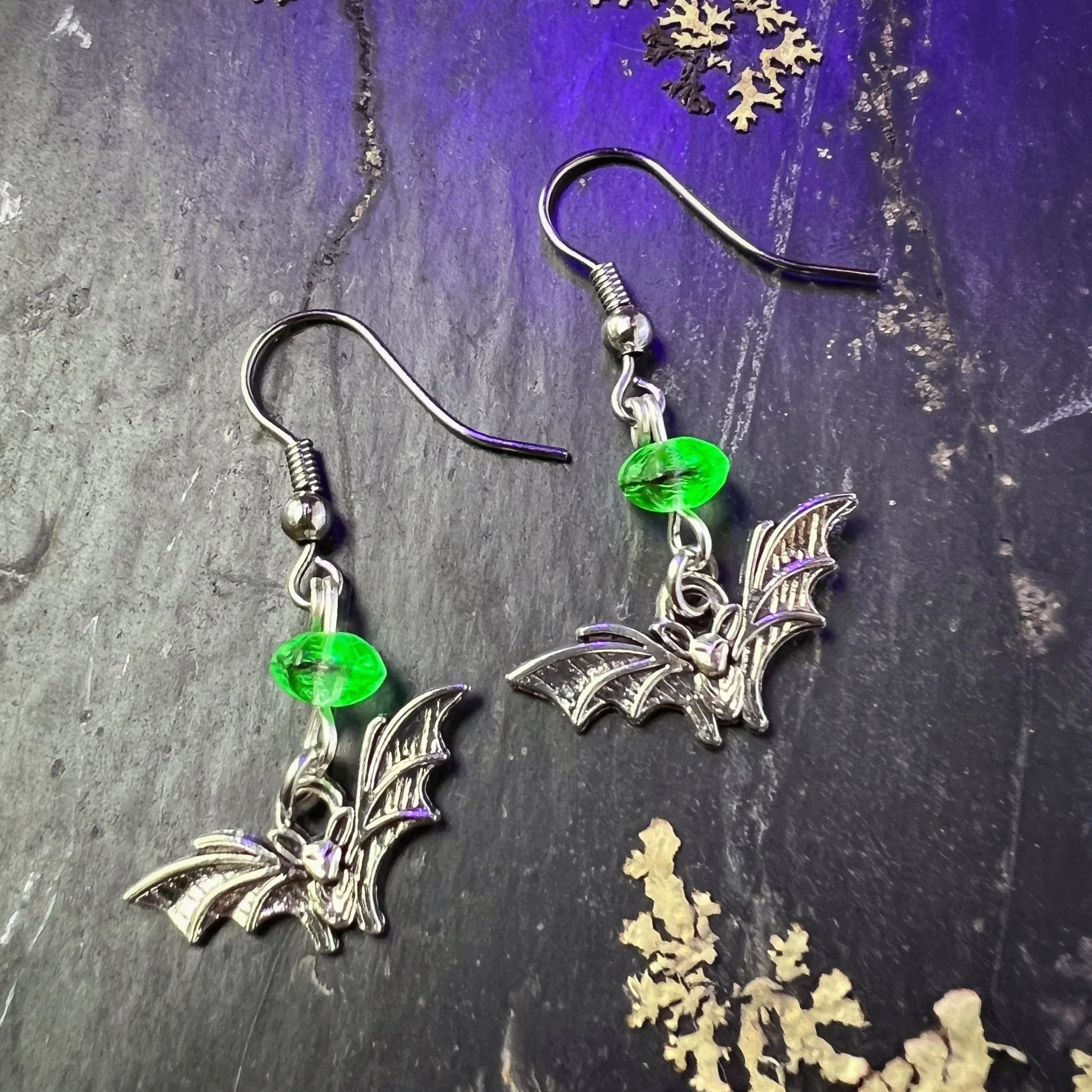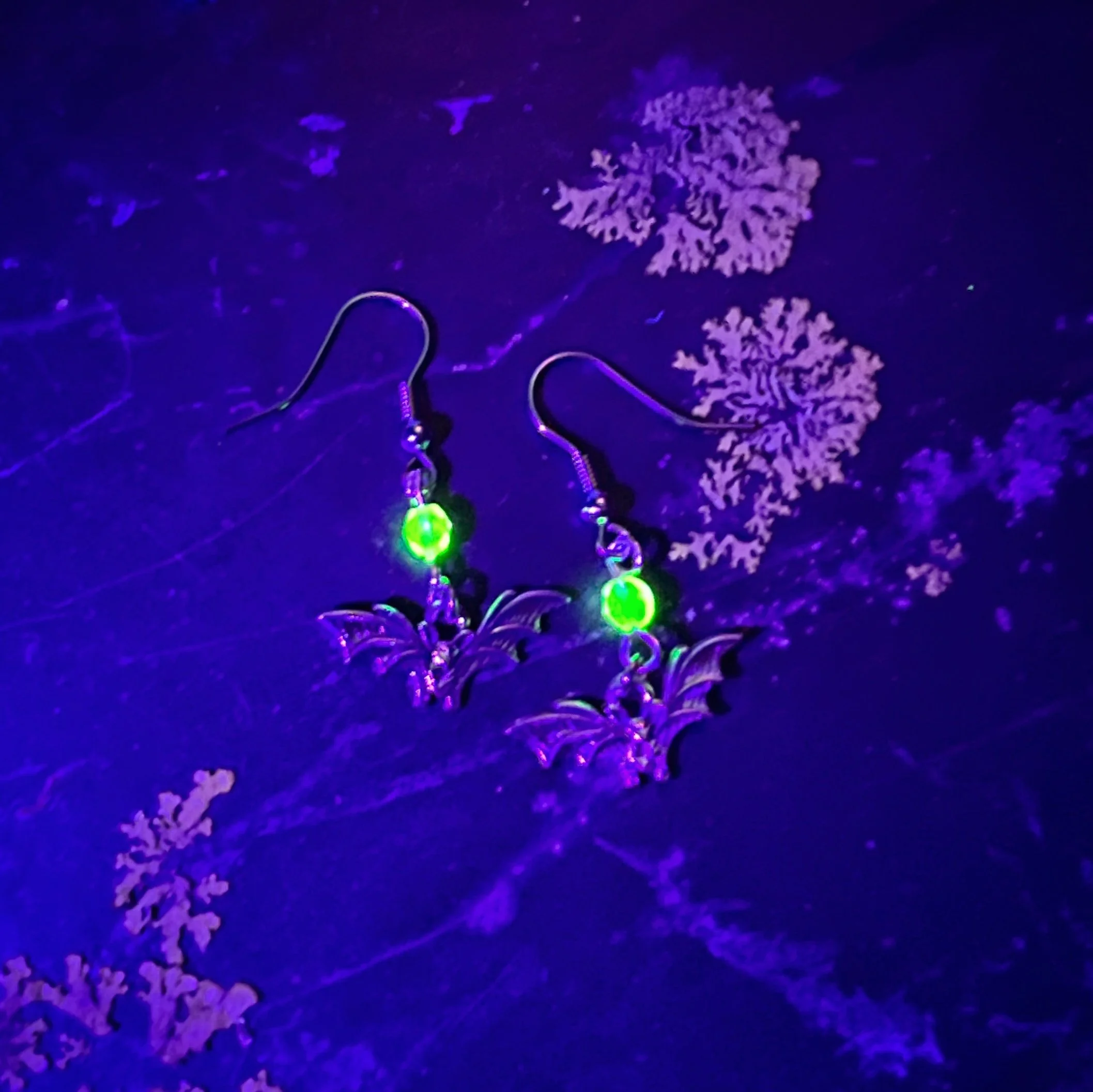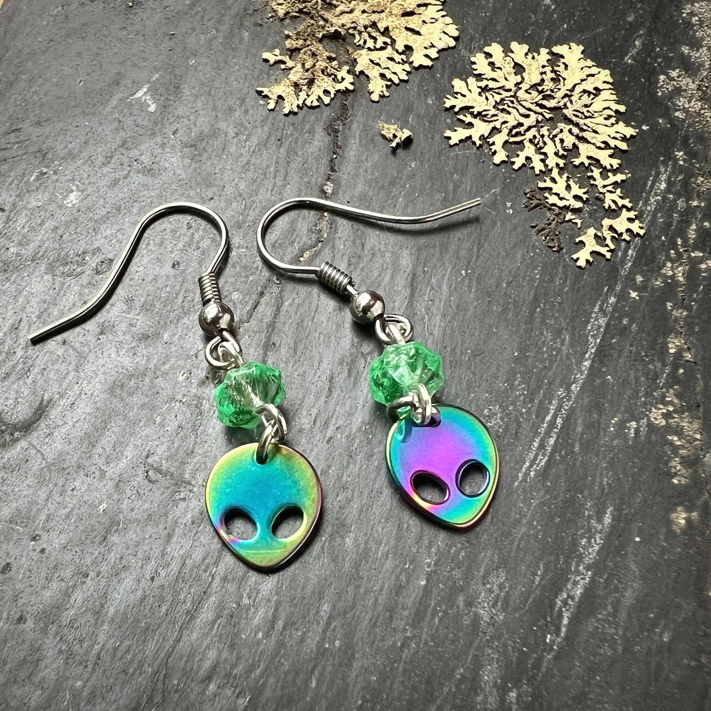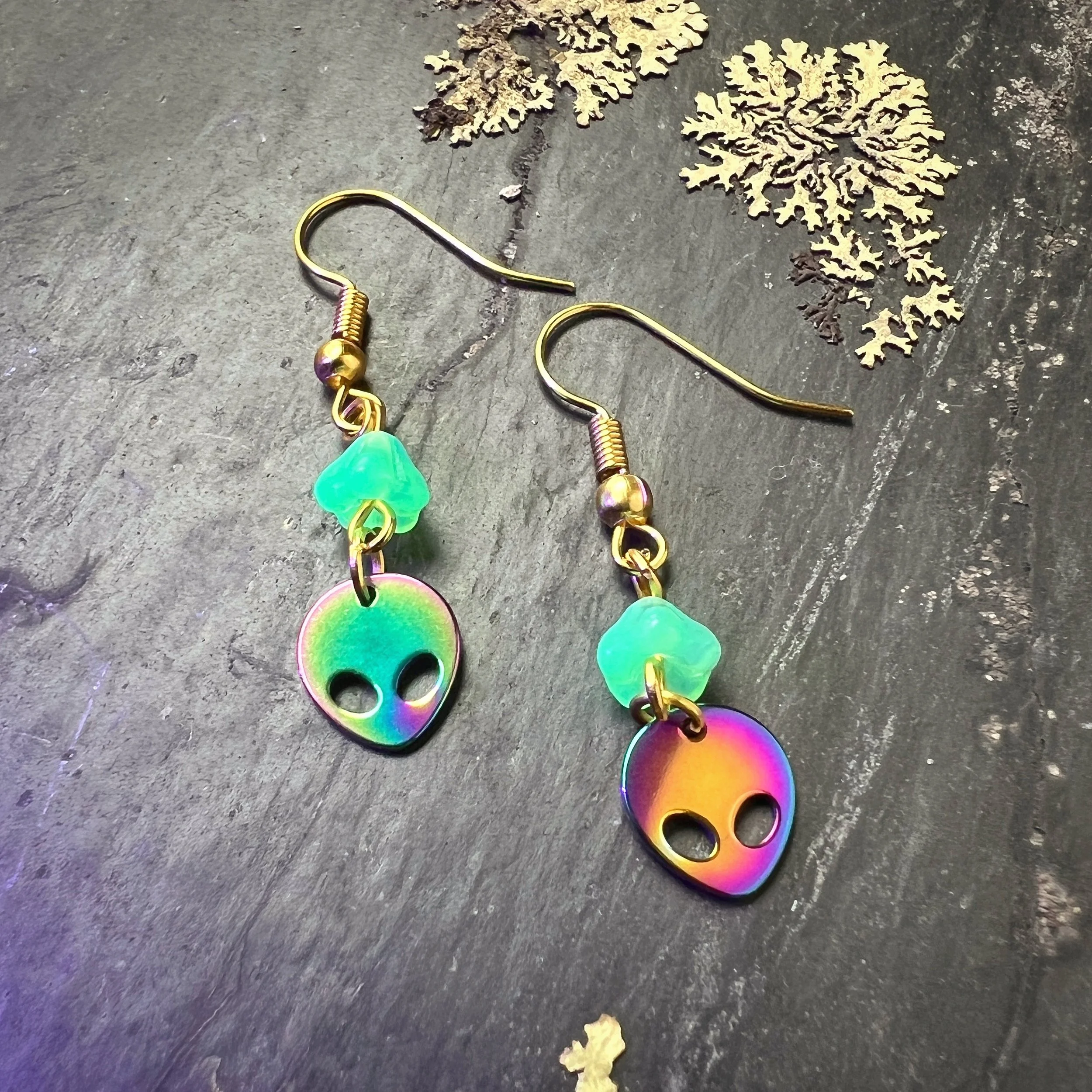 Moons Czech Uranium Glass Earplug Ear Cuffs with moon Charms - Celestial Sensory Jewelry for Sound Sensitivity